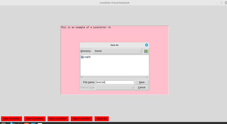 Created using Python and Tkinter on Linux Mint Cinnamon, Loveletter is a loveletter to early internet and its aesthetic.